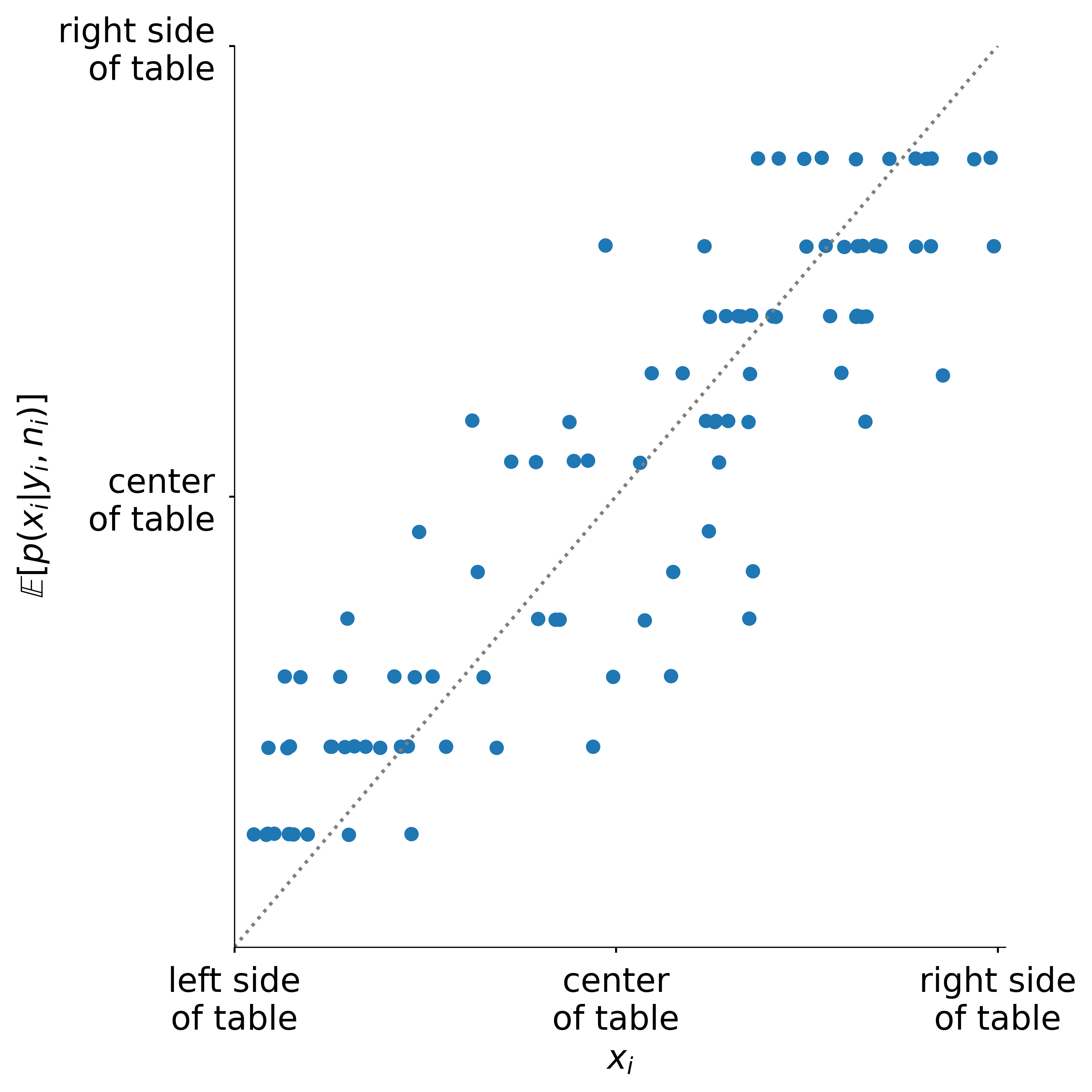 If we play this game many times the posterior mean produces reliable estimates of the position of the first roll