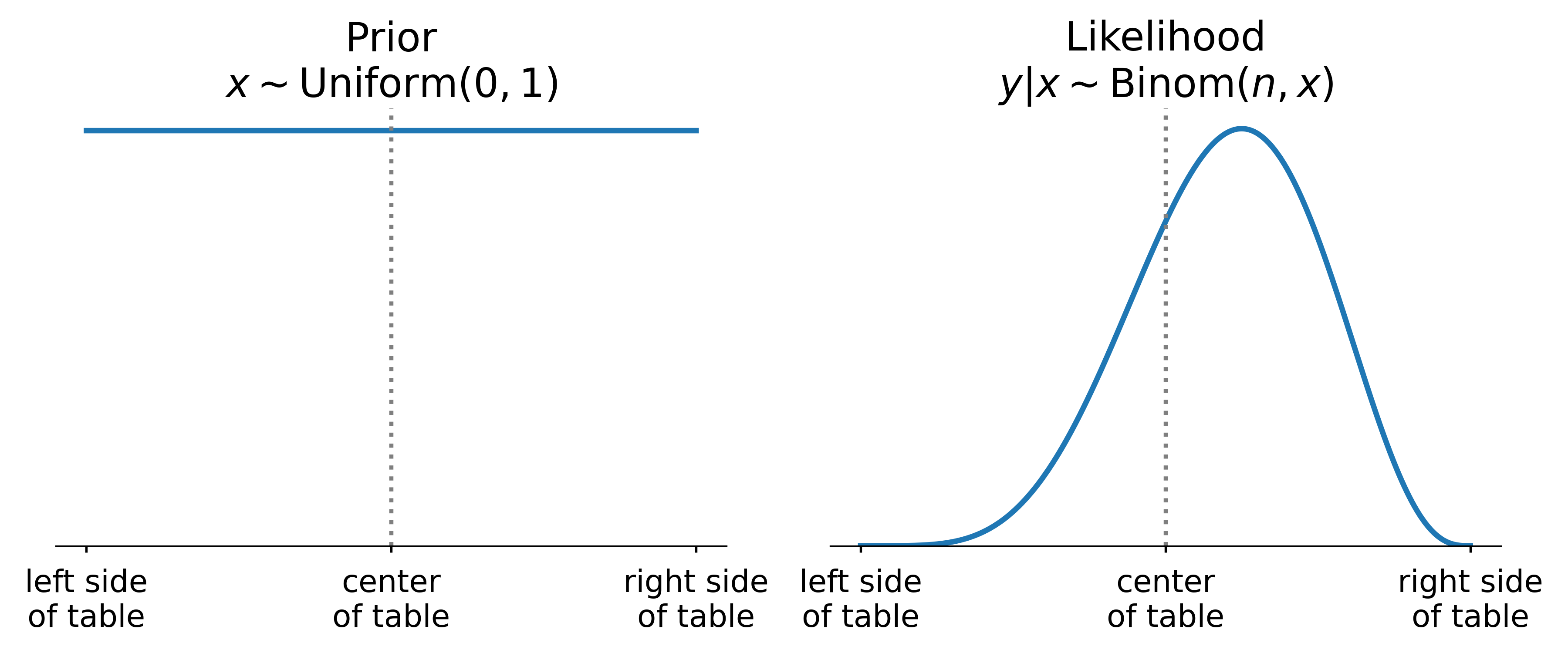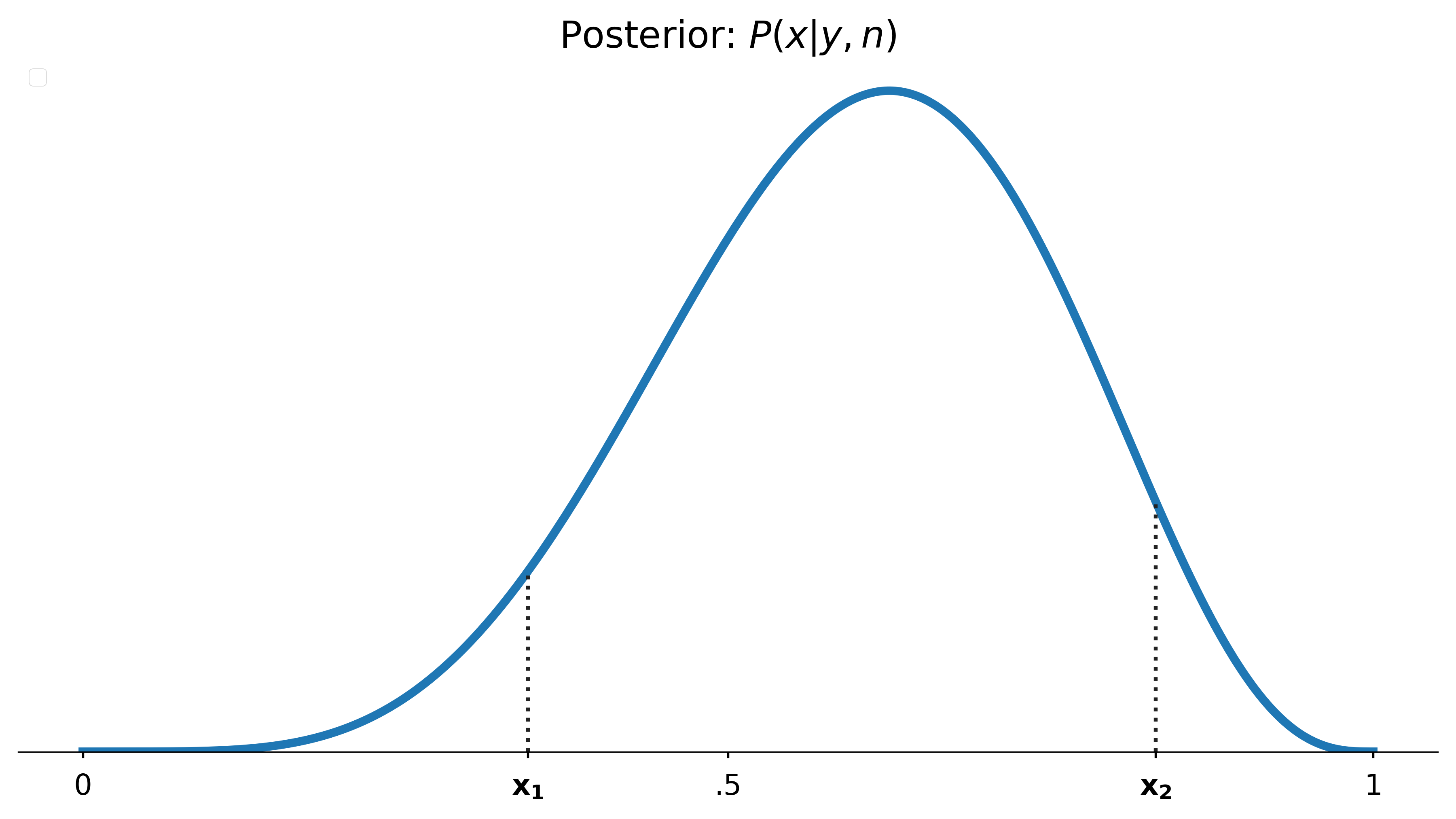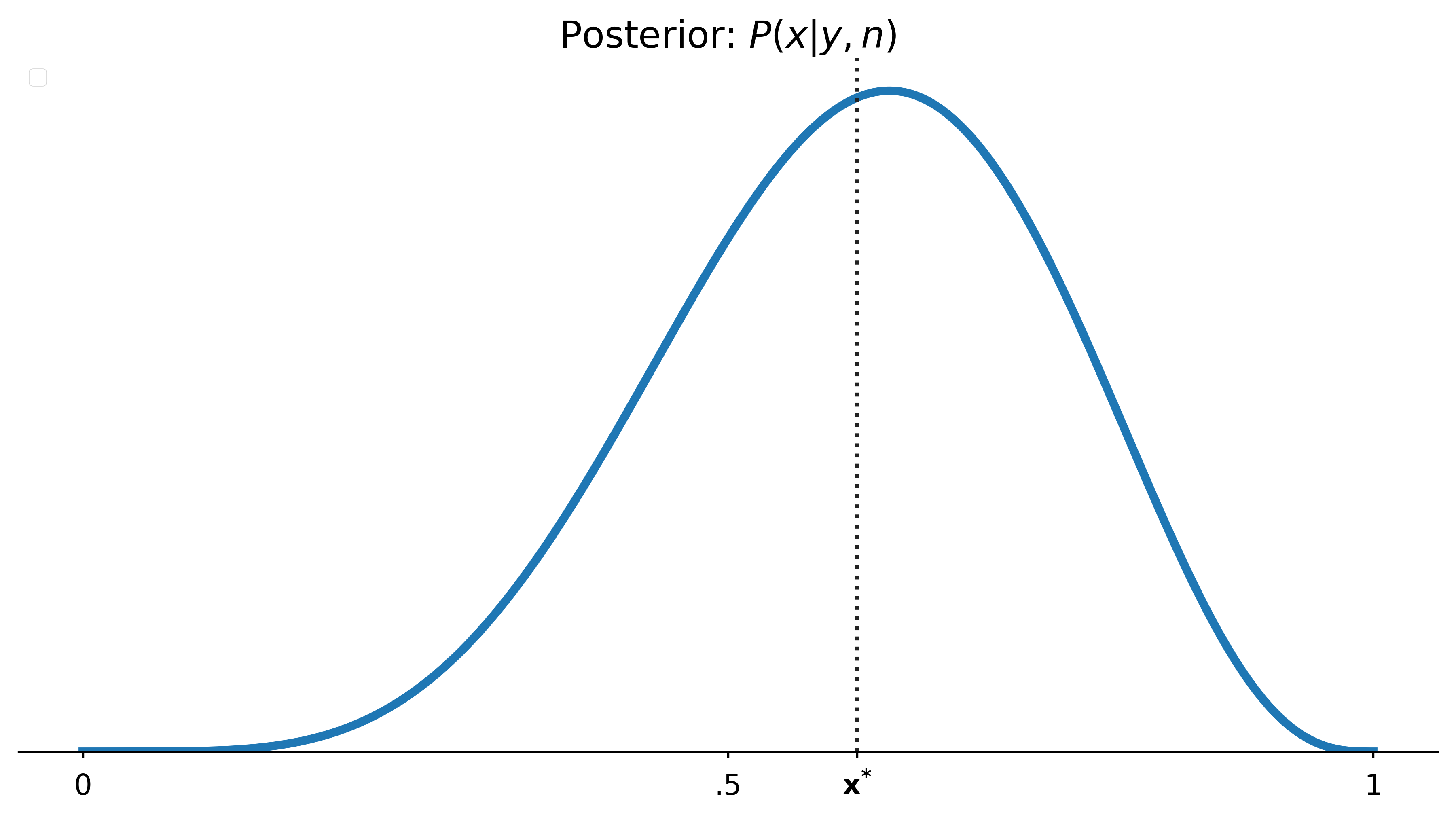 \underbrace{P(x\vert y,n)}_{Posterior} = \frac{\overbrace{P(y,n\vert x)}^{likelihood}\ \overbrace{P(x)}^{priors}}{\underbrace{P(y,n)}_{marginal\ likelihood}}