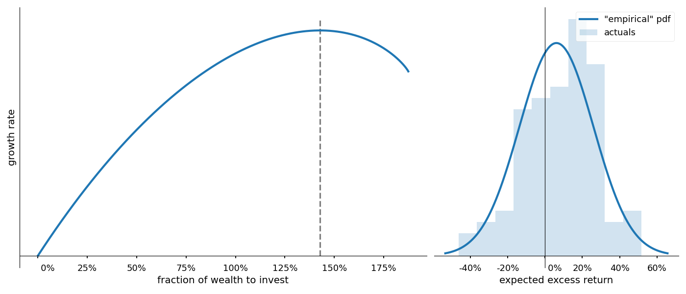 What if we want to apply the Kelly criterion to a “continuous gambling game”, such as the stock market?